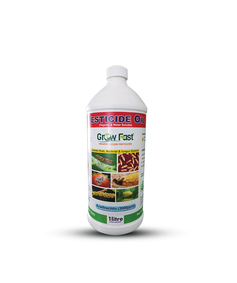 Growfast Bio Pesticide and Pesticide Oil are plant-derived broad spectrum Biopesticides for the control of insects and diseases in organic and conventional operations. Pesticide Oil has 3 functions being Bactericide, Fungicide and Pesticide